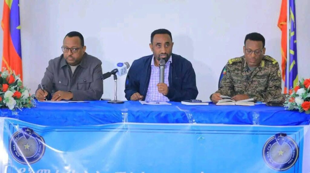 ከፍተኛ የሥራ ኀላፊዎች ከመርጡለ ማርያም ከተማ አሥተዳደር እና ከእነብሴ ሣር ምድር ወረዳ ነዋሪዎች ጋር እየተወያዩ ነው። ውይይቱ “ዘካሪ፣ መካሪ የሀገር