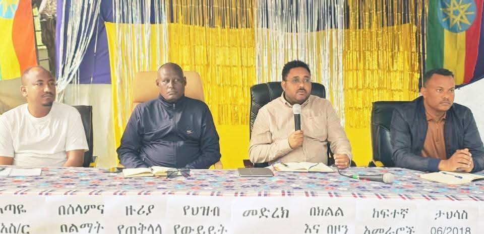 (ታኅሣሥ 06/2018 ዓ.ም) በሰሜን ሸዋ ዞን አጣዬ ከተማ አሥተዳደር ከተውጣጡ የማኅበረሰብ ክፍሎች ጋር ሕዝባዊ የሰላም አና የልማት ኮንፈረንስ ተካሂዷል።